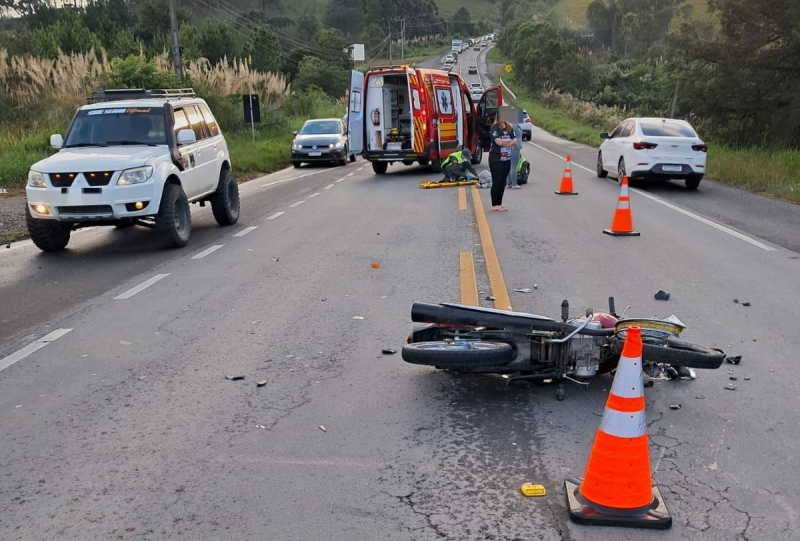 Acidente na SC-418: Colisão lateral deixa motociclista ferido em São Bento do Sul