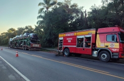 Princípio de incêndio em carreta cegonha mobiliza Bombeiros na BR-116 em Papanduva