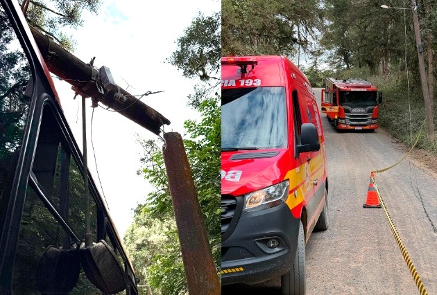 Na tarde desta quarta-feira, 15 de abril de 2026, as guarnições do Corpo de Bombeiros Militar de São Bento do Sul foram acionadas para atender a um acidente de trânsito na Estrada Pessegueiro, situada no bairro Dona Francisca. A ocorrência, registrada por volta das 14h53, envolveu a colisão de um ônibus contra um poste da rede elétrica, mobilizando as viaturas ASU-604 e ABTR-181 para o suporte no local.