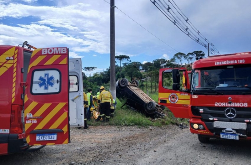 Um acidente de trânsito mobilizou o Corpo de Bombeiros de Canoinhas na tarde desta quinta-feira (15). Por volta das 14h, um Ford Fiesta capotou no bairro Boa Vista, deixando o condutor, um rapaz de 19 anos, ferido.
