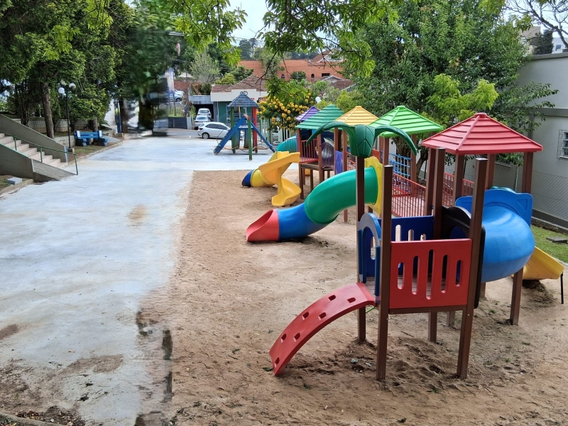 SÃO BENTO DO SUL - A Praça do Centenário, tradicional ponto de convivência ao lado do Hospital Sagrada Família, está passando por uma revitalização completa. Sob coordenação da Secretaria de Obras (SEMOB), o espaço recebeu um novo playground moderno, substituindo a estrutura antiga por equipamentos que seguem as normas de segurança vigentes.
