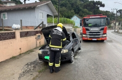 Corpo de Bombeiros controla incêndio em veículo no bairro Serra Alta