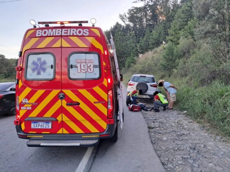 Um grave acidente mobilizou o Corpo de Bombeiros na noite desta quinta-feira (12), na SC-418. Um idoso de 66 anos, identificado pelas iniciais P.F.L., foi atropelado por um veículo Ford Ecosport no trecho conhecido como “27 Curvas”, no bairro Oxford.