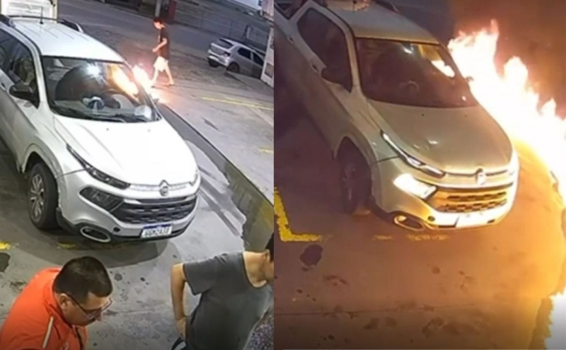 Novo ataque: Relatos indicam que ele tentou retornar ao posto para iniciar um novo foco de incêndio, recuando apenas ao avistar a viatura policial.