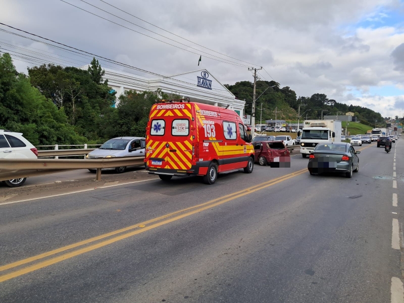 Um acidente de trânsito mobilizou as equipes de socorro no final da tarde desta segunda-feira (19), no bairro Boehmerwald, em São Bento do Sul. A colisão traseira ocorreu por volta das 17h18 na rodovia SC-418, bem em frente à loja Havan, envolvendo um GM Celta e um Jeep Renegade.