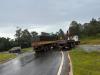 O trânsito no trevo apresentou lentidão durante os trabalhos, mas foi normalizado após a retirada do veículo e a manutenção da rede elétrica.