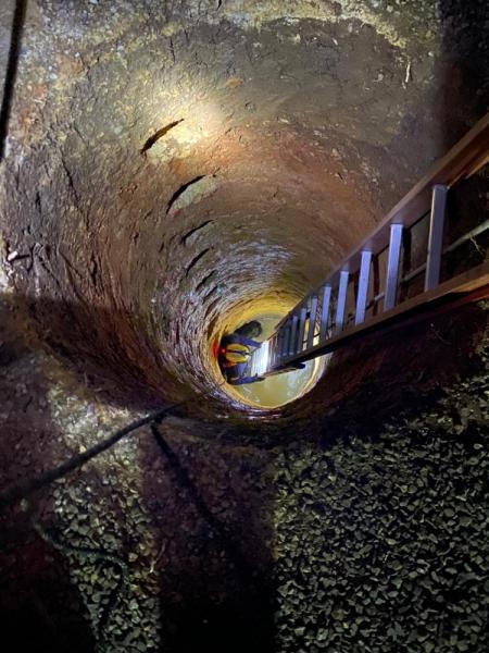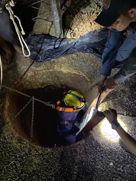 Para realizar o salvamento, os bombeiros utilizaram a escada da viatura para acessar o interior da estrutura. Com técnica e cautela, a equipe conseguiu alcançar a Mel e trazê-la de volta à superfície em segurança.
