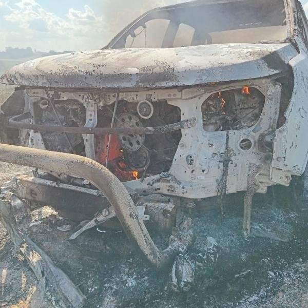 Danos e Combate No local, os socorristas constataram que uma caminhonete Chevrolet S-10 havia sido completamente consumida pelas chamas. O fogo chegou a se alastrar para uma área de vegetação rasteira nativa, mas foi contido precocemente pelos funcionários da propriedade.