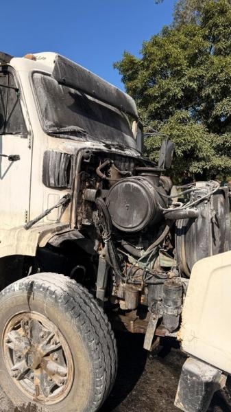 As guarnições das viaturas ABTR-101 e ASU-459 deslocaram-se rapidamente para o local, onde encontraram um caminhão Volvo N12 280, de cor branca, parado na faixa de domínio da rodovia. As chamas já haviam atingido a área do motor e a cabine do veículo, que estava carregado com cascalho.