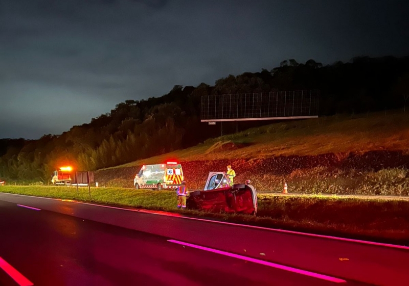 Um acidente mobilizou equipes de resgate no final da noite deste domingo (05), no KM 2 da BR-101, em Garuva. Um Citroën C3 branco, que seguia no sentido Norte, saiu da pista e capotou em um declive no canteiro central da rodovia por volta das 23h39.