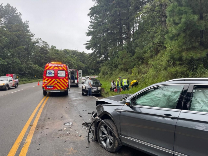 Ao chegarem ao local, os bombeiros encontraram cinco pessoas envolvidas na colisão, distribuídas em três veículos: