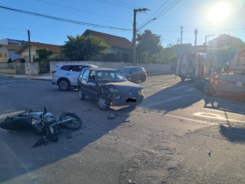 Um grave acidente de trânsito foi registrado no final da tarde desta terça-feira (27), por volta das 17h44, no bairro Brasília. A colisão, que envolveu um Fiat Uno e uma motocicleta Honda CG 160, ocorreu nas proximidades da unidade da ArcelorMittal.