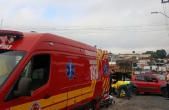Acidente ocorreu na manhã desta segunda-feira (2) no bairro Vila Nova; vítima de 42 anos foi encaminhada ao hospital.