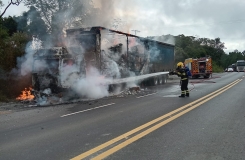 Fogo consumiu parte de carregamento de embalagens plásticas; guarnições utilizaram 7 mil litros de água no combate às chamas.