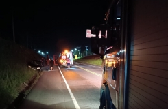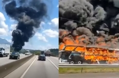 Incêndio em ônibus mobiliza bombeiros na BR-101 em Joinville nesta sexta-feira (23)