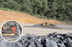 Bloqueio total ocorre no quilômetro 15,7 da SC-418 para detonação de rochas; PMRv orienta motoristas a buscarem rotas alternativas.
